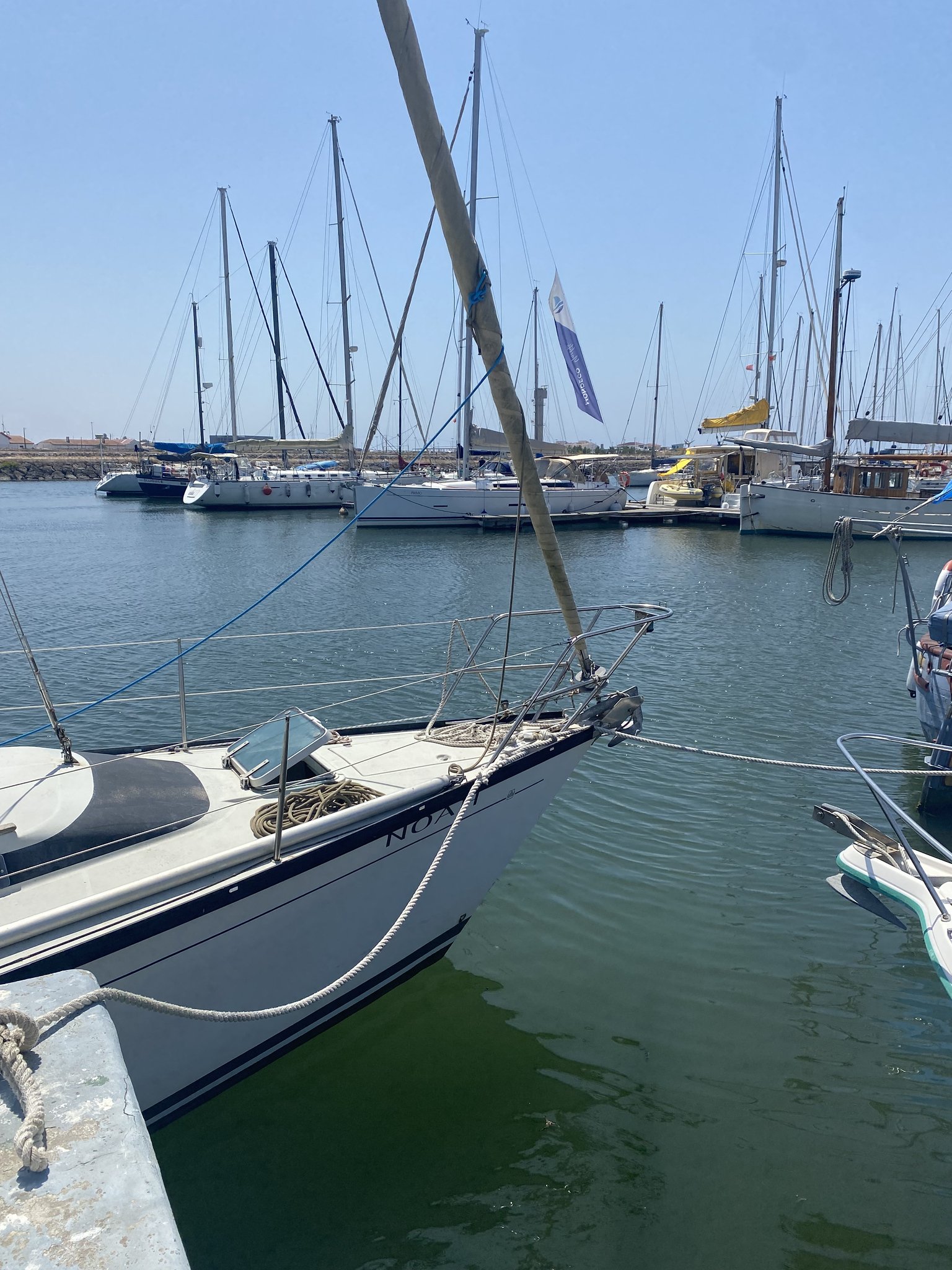 Many believe that the two two happiest days of a boaters life is when you buy the boat and sell the boat I disagree with this notion. I cherished my boat, and selling her her brought me sorrow. Unfortunately, in order to afford my new boat Belle, I needed to sell Noah. What made the situation even worse was that I couldn't select her future owner who would value her as she deserved. In fact, I had already purchased Belle, and having two boats docked in the same marina was not only impractical but also quite costly, which led me to sell her to the first buyer who showed interest. The new proprietor firmly requested to move Noah to her new marina in Northern Portugal on the very day of the purchase and sought my assistance in doing so. He acted foolishly, as I pointed out immediately. I had arranged everything to lift Noah from the water the day following the sale, with an inspection already scheduled and paid for. I had also arranged for ten days of dry docking space, courtesy of my annual contract, expecting the new owner wanted to do a dry survey. However, the new owner was determined to move the boat to Aveiro right away. I even suggested, with assistance from a friend in Sines, that we should delay until after the inspection and when the wind conditions were more favorable, which were expected to be minor in those days. Nevertheless, he was obsessive. It was in my best interest to sell her quickly, so I agreed to assist him in taking Noah to Aveiro, and on the way do a proper farewell sail for my dear Noah… thus, I created a detailed passage plan for the 300-mile journey. We would have to motor, staying close to the 20-meter depth line, as orcas were quite active that week. Since we were likely to need to motor all the way to Aveiro, I planned to navigate from Sines to Sesimbra, then on to Cascais, Peniche, Figueira da Foz, and finally to Aveiro, with Nazaré as an alternative if issues arose. The new owner consented to the plan, despite not having the faintest idea of the effort required to motor sail for 8 to 10 hours each day consecutively.