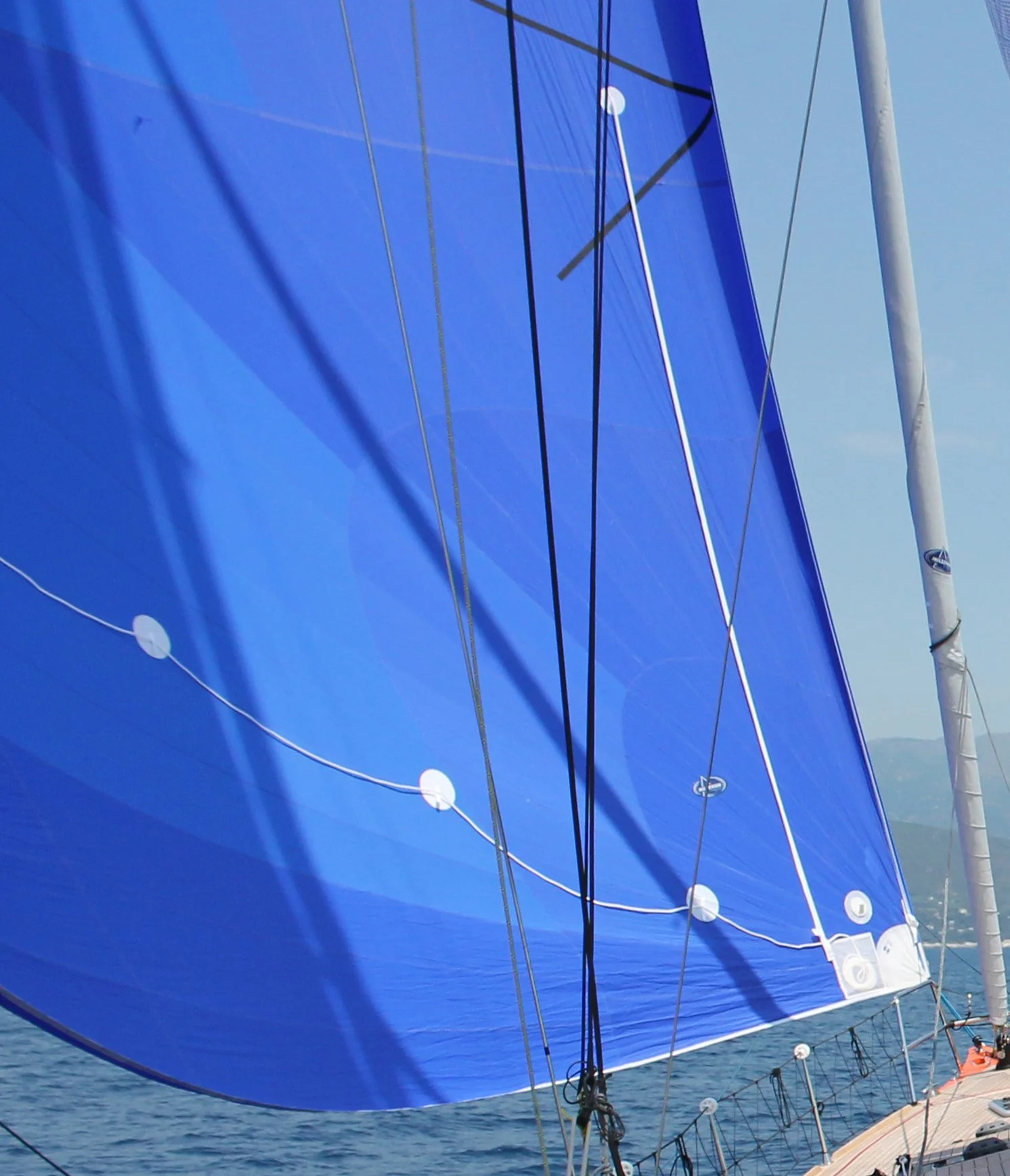 But now in Bele I had a fifferent sail configuration I had to learn to use. The genaker I found in the aft lockerwas tighly rolled around a tick black cable I later learned it is a anti-torsion line and it´s part of a furling system that make it’s depoyment much easier than the standart collar- sock system and safely made from the cockpit even single handed.