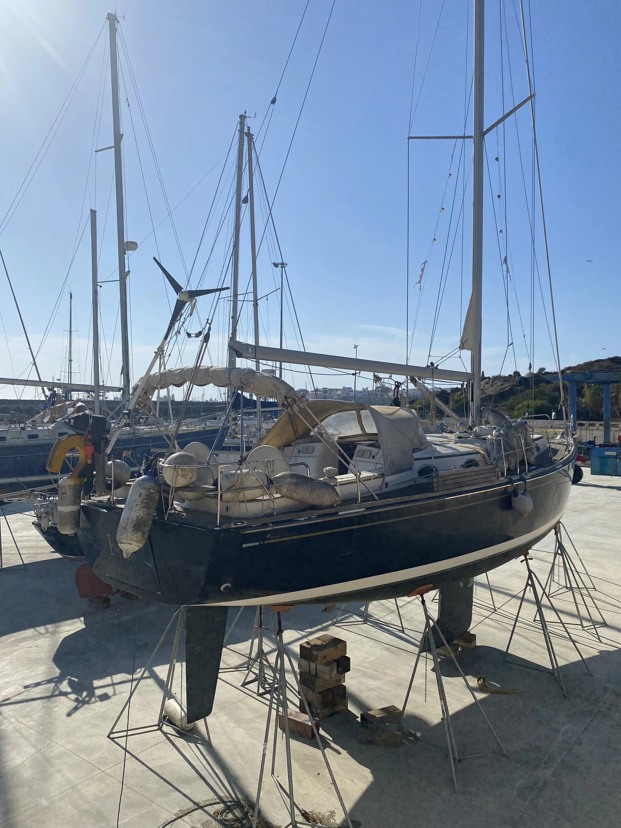 But like any stubborn mind, I did not give up. I checked with some local friends around the marina and found she had been on the hard for at least 3 years. Some foreign sailor stopped in Sines Marina, hauled her out and left her on dry...
