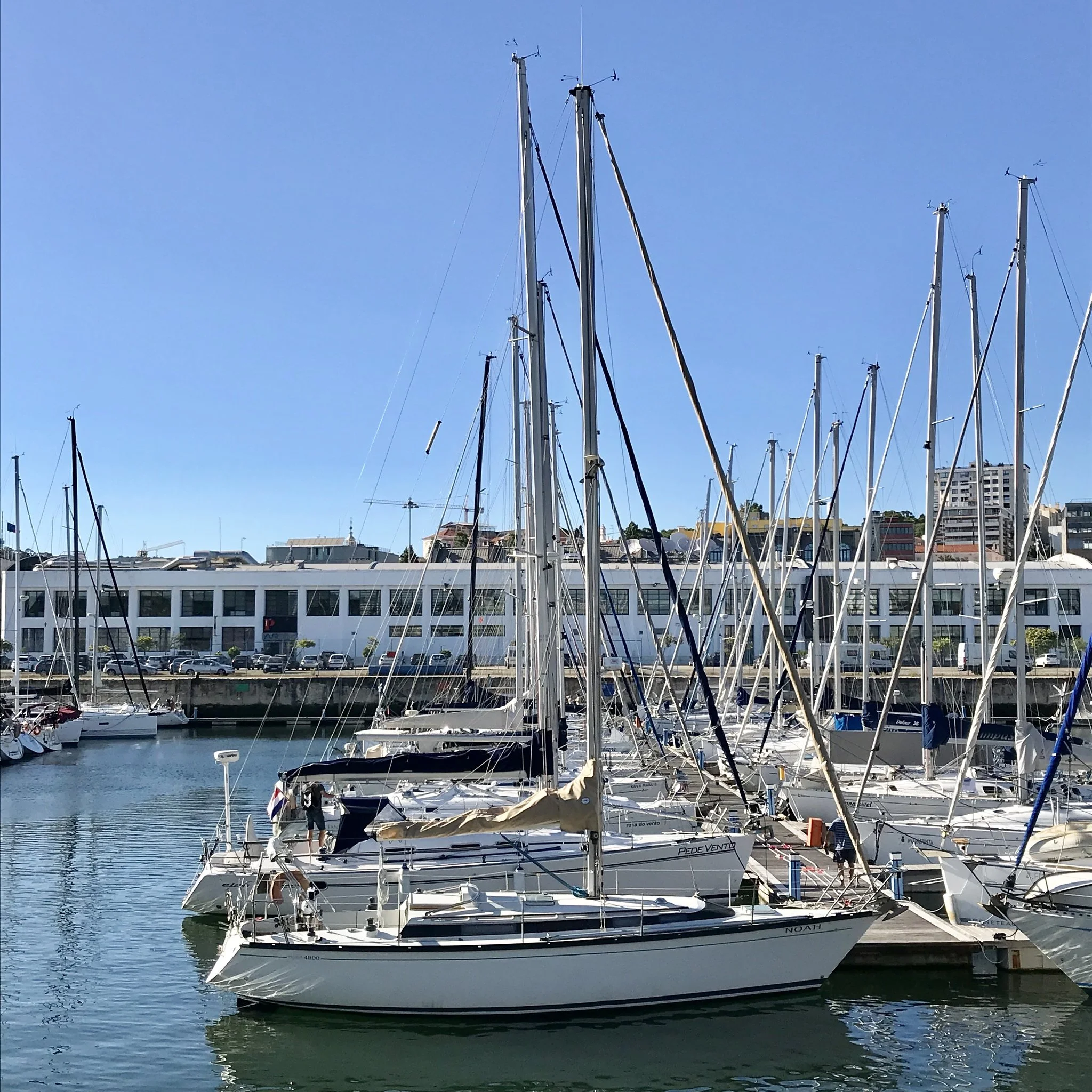 Everything was new to me. Noah appeared enormous in the water, and it was challenging to motorsail her along the tight channel from the Botyard to the Tejo river, but with the help of my brother and forever wingman, we made it through safely into Lisboa Marina.